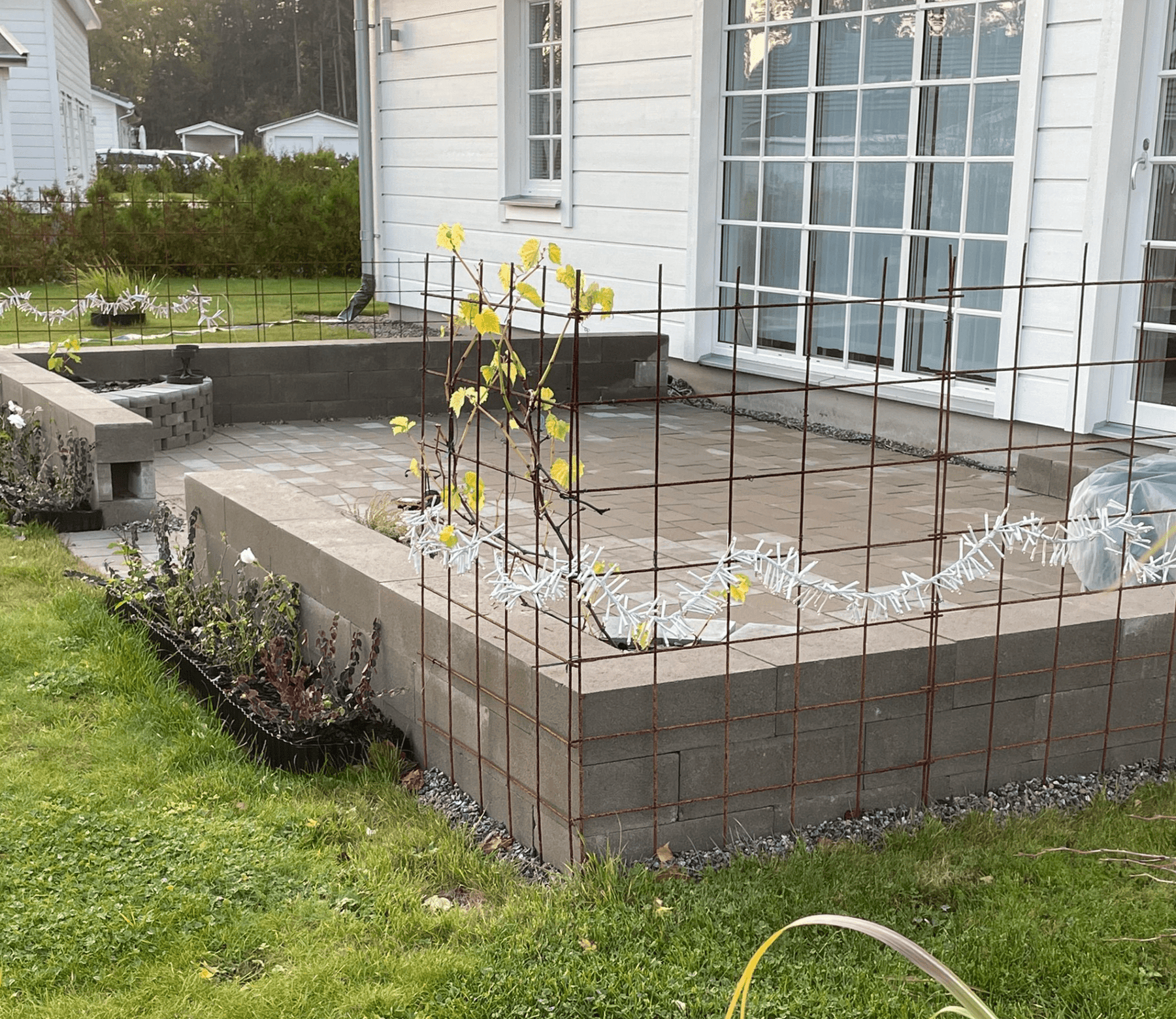 Vid en fristående murkonstruktion byggd enligt anvisningen ovan så rekommenderar vi en maxhöjd om ca 60 cm ovan mark.
