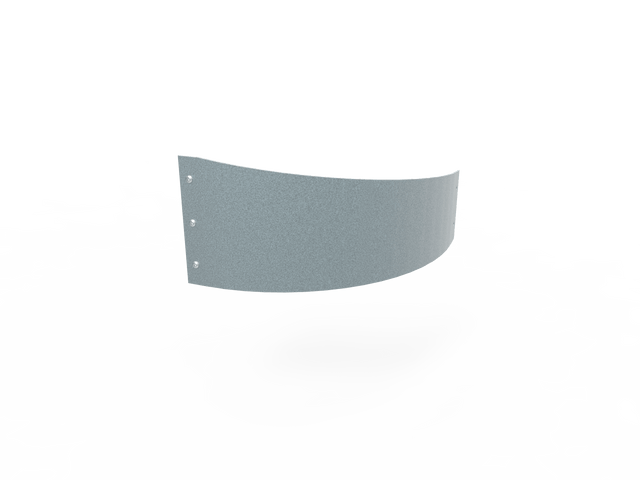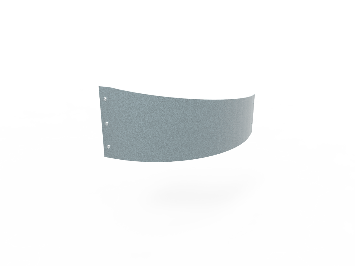 Bågformad planteringskant i aluzink som ansluter en 12 cm:s kant i höger ände med en 18 cm :s kant i vänster ände. Ger en radie på 28 cm. Finns även som anslutning i höger ände samt som rakt stöd.