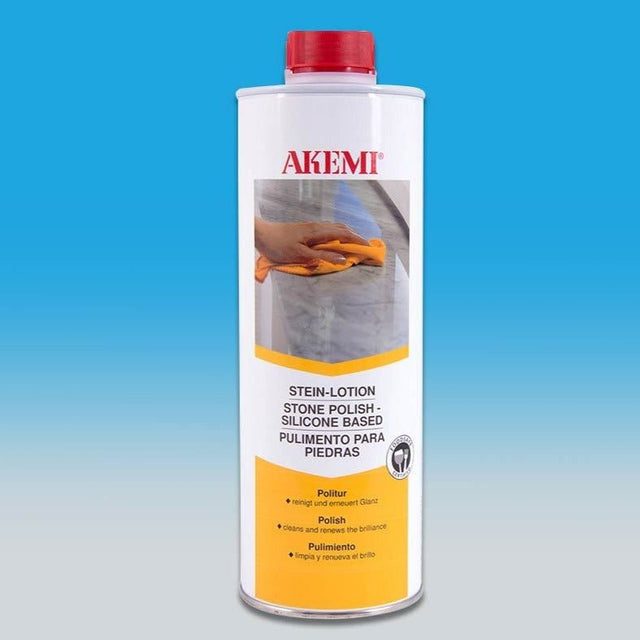 Stenlotion från Akemi! Medlet förnyar glansen på polerade ytor av natursten och konststen. Du kan använda det på exempelvis granit, gnejs och marmor samt på polerade ytor av granitkeramik eller annan klinker. Du får efter behandling ett visst skydd mot nedsmutsning och en viss vattenavvisande effekt. Kan brukas både inomhus och utomhus.