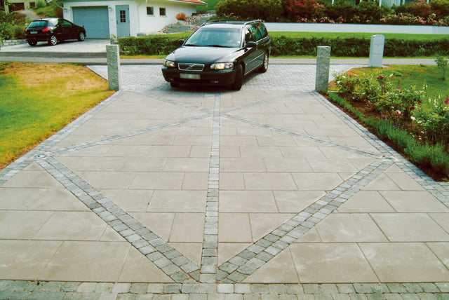 Den här kvadratiska plattan har en varm, jordnära färgton som ger en inbjudande känsla till allt från uppfarter och garageuppställningar till uteplatser och gångstråk. Dessa egenskaper gör den perfekt för vanliga personbilar, vilket innebär att du kan använda den både för praktiska ytor och dekorativa inslag i din trädgård.