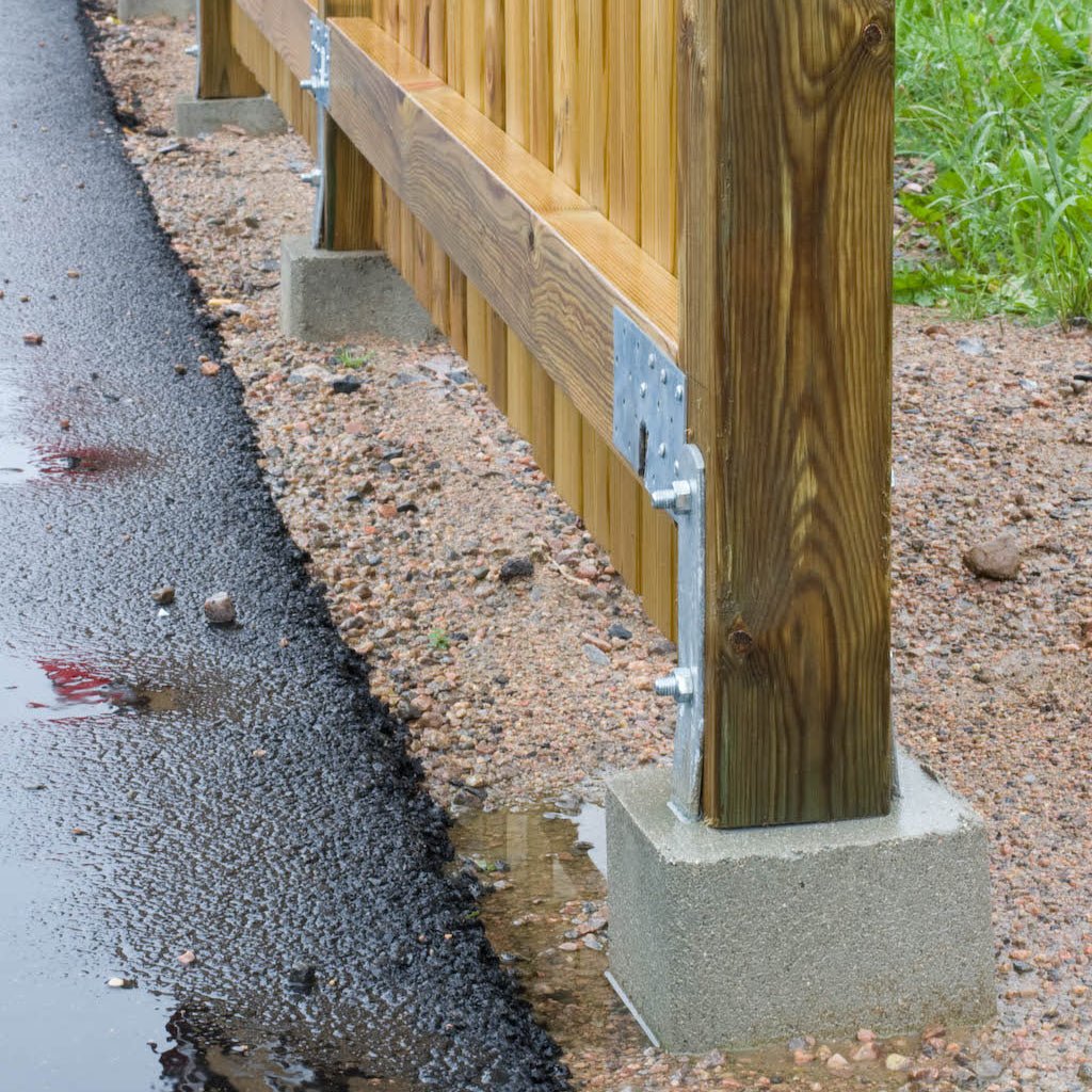 Plint i betong med fast stolpsko och en tumstorlek på 3". Stolpen kommer i grå betong och är perfekt för dig som skall bygga altan, veranda eller trädäck och spaljé.