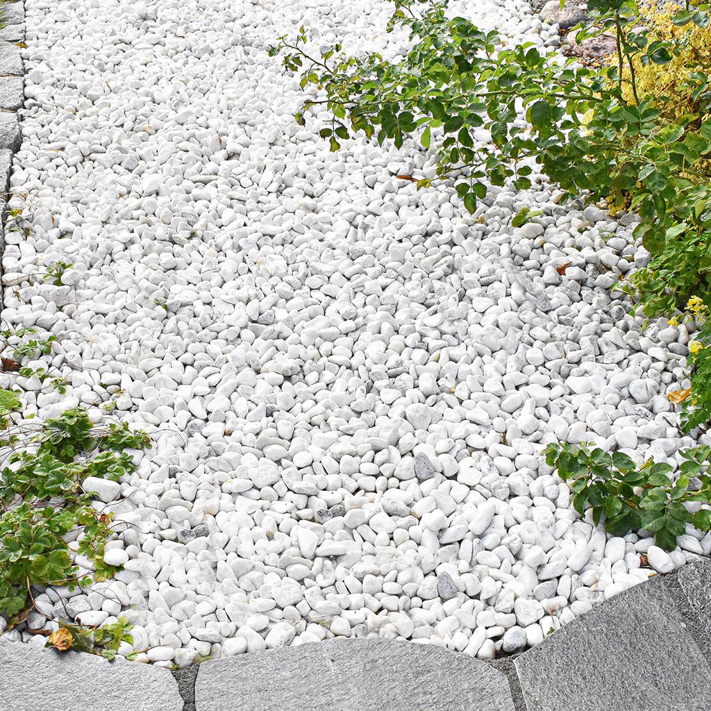 Med fyra olika storlekar öppnas möjligheterna ytterligare och ger kombinationsmöjligheter för att skapa effektfulla resultat. Dekorsten Tumlad Dolomit Vit 10-20 är den minsta stenen i serien dekorsten, och gör sig perfekt på både gångbara ytor och rent dekorativa hörn i din trädgård. Att lägga en vit dekorsten i trädgården ger en lyxig känsla och ger ljus åt ytorna året om. Dekorsten Tumlad Dolomit kommer på smidiga 20kg säckar men finns även i 1000 kg säck för det större trädgårdsprojektet och om behovet är en större dekorstensyta.