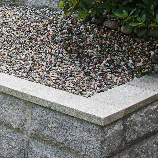 Med just sin blästrade yta så får du en jämn toppsten med raka linjer och släta sidor. Detta bidrar till en modernare känsla än många andra naturstensprodukter. Avtäckning Modern lämpar sig väl ovanpå både betongmur och naturstensmur och du fäster fast den med stenlim och monterar stenen dikt an.