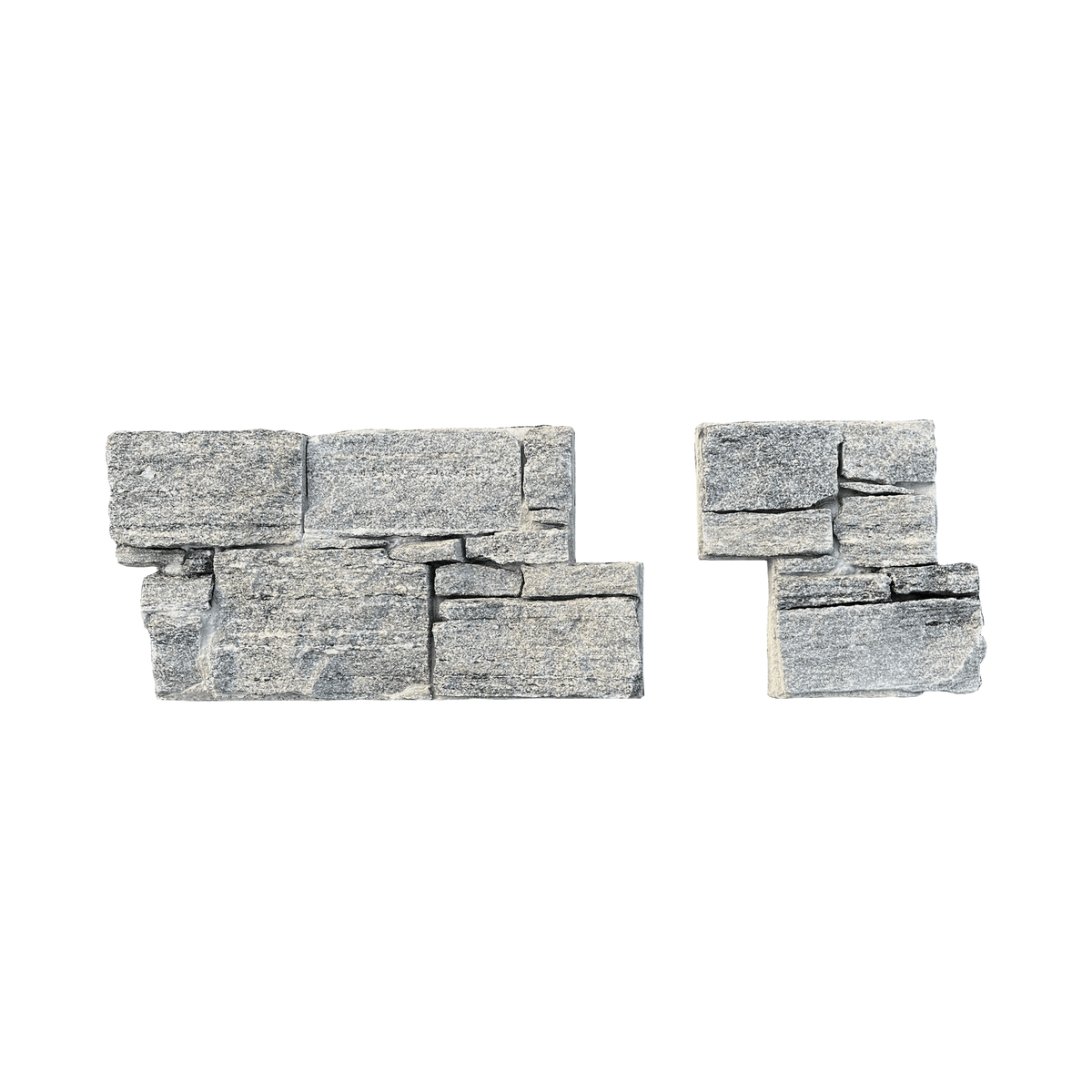 Hörnstenen till vår beklädnad Granit Rustik. Stenen är framtagen för att lättare möjliggöra snygga ytterhörn exempelvis runt husknuten eller vid beklädnad av någon stolpe eller pelare i hemmet. Hörnet består av två bitar som enkelt sätts ihop och monteras med naturstensfix.
