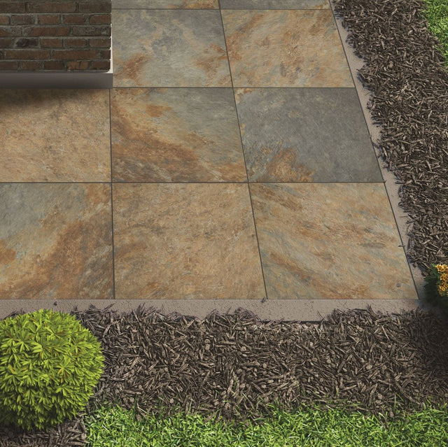 Plattans yta är noggrant utformad för att efterlikna naturlig stenstruktur, men med alla fördelar som kommer med slitstark granitkeramik. Den är reptålig, frostsäker och mycket lätt att underhålla – perfekt för både inomhus- och utomhusmiljöer.