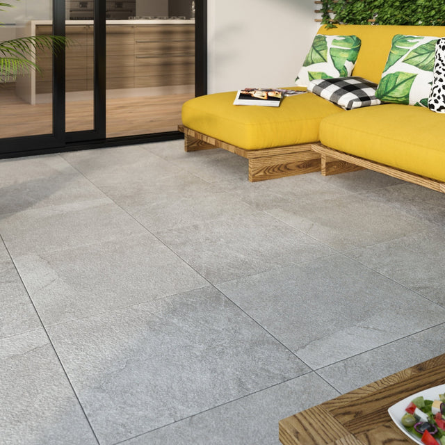 HÖNÖ är en stilren granitkeramikplatta som för tankarna till råhuggen natursten i dämpade grå toner. Med sin subtila struktur och naturliga färgskiftningar skapar den ett levande men harmoniskt uttryck, perfekt för dig som vill ha ett stilrent och hållbart utegolv med genuin känsla.