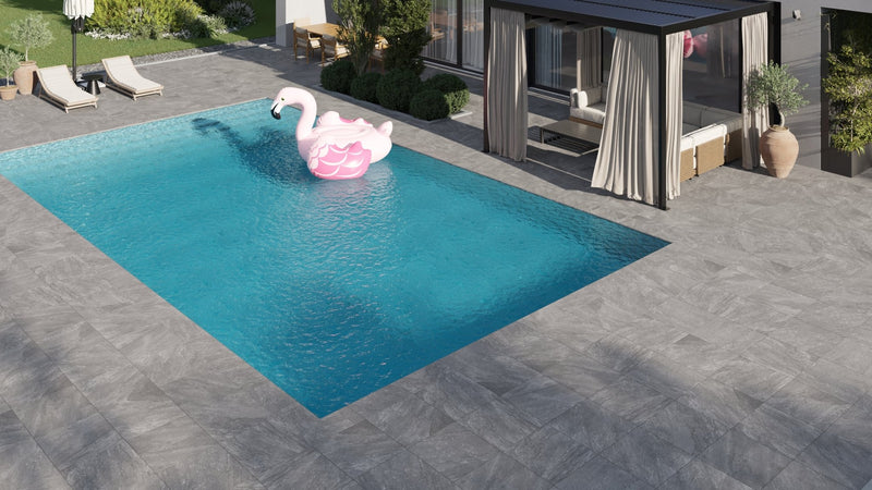 Granitkeramik har namnet till trots ingenting med naturstenen granit att göra utan syftar till att beskriva hårdheten på produkten. Granitkeramik tillverkas genom att finmalda porslinsleror pressas under högt tryck och sedan bränns i höga temperaturer. Detta ger materialet en hög täthet och låg fuktabsorption vilket gör plattorna mycket tåliga för spill och repor. Måtten är väldigt exakta vilket innebär att du får en smidig montering av din poolkant. Se även våra snygga poolkantstenar i äkta natursten! En poolsten i granit ger en slitstark yta kring poolen och en exklusiv känsla som står sig med tiden.