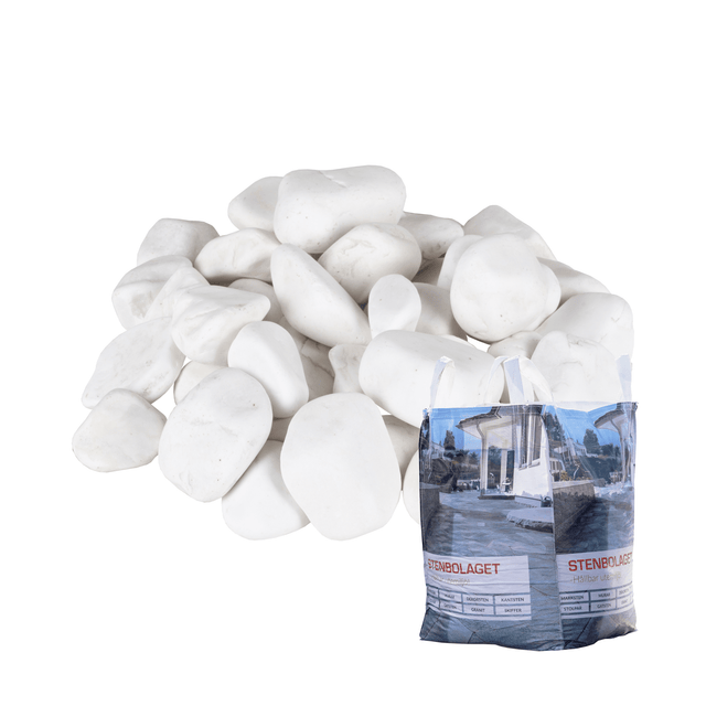 Dekorsten Tumlad Vit 40-60 kommer i storsäck om 1000kg men kan även köpas som kompletterande småsäckar på 20kg. Storsäcken är ett perfekt och prisvärt alternativ för dig som ska dekorera en större yta. Ett tips är att lägga dekorsten tumlad dolomit kring husgrund och som dekorativa stråk att ställa blomkrukor och skapa planteringar i. En tumregel är att vår storsäck på 1000kg täcker ca 12-15 kvadratmeter vid en dekorativ bädd.