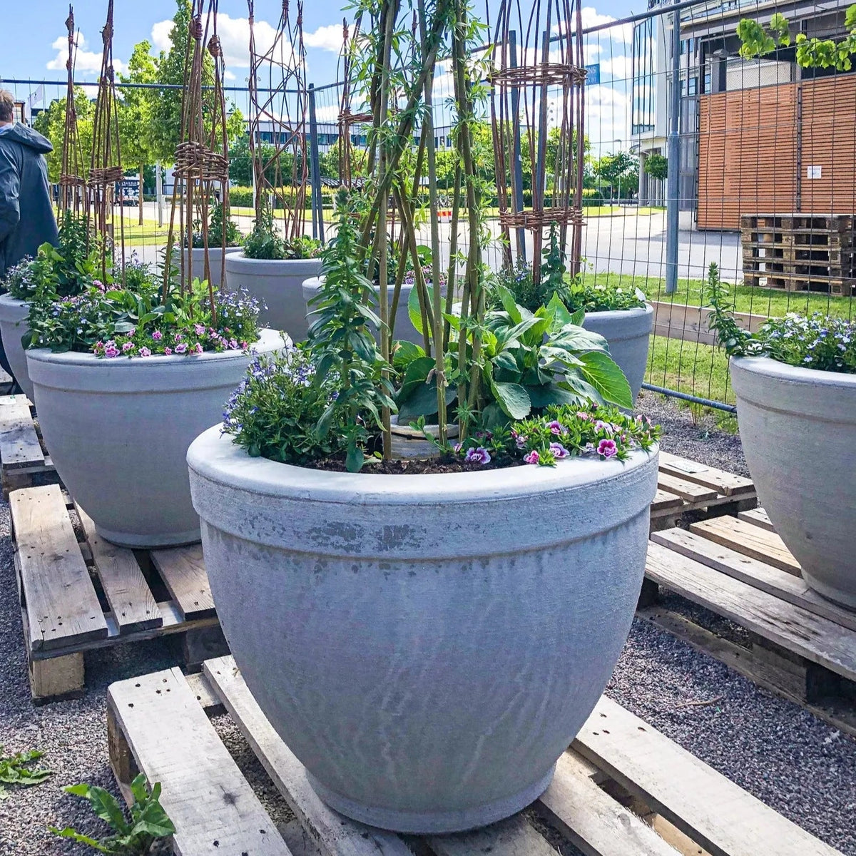 Den stora jordvolymen välkomnar planteringar av buskar, mindre träd och övrig växtlighet. Den mjuka formgivningen är hjälper jorden att behålla sin fukt, vilket gör att din växt kommer trivas gott i krukan.