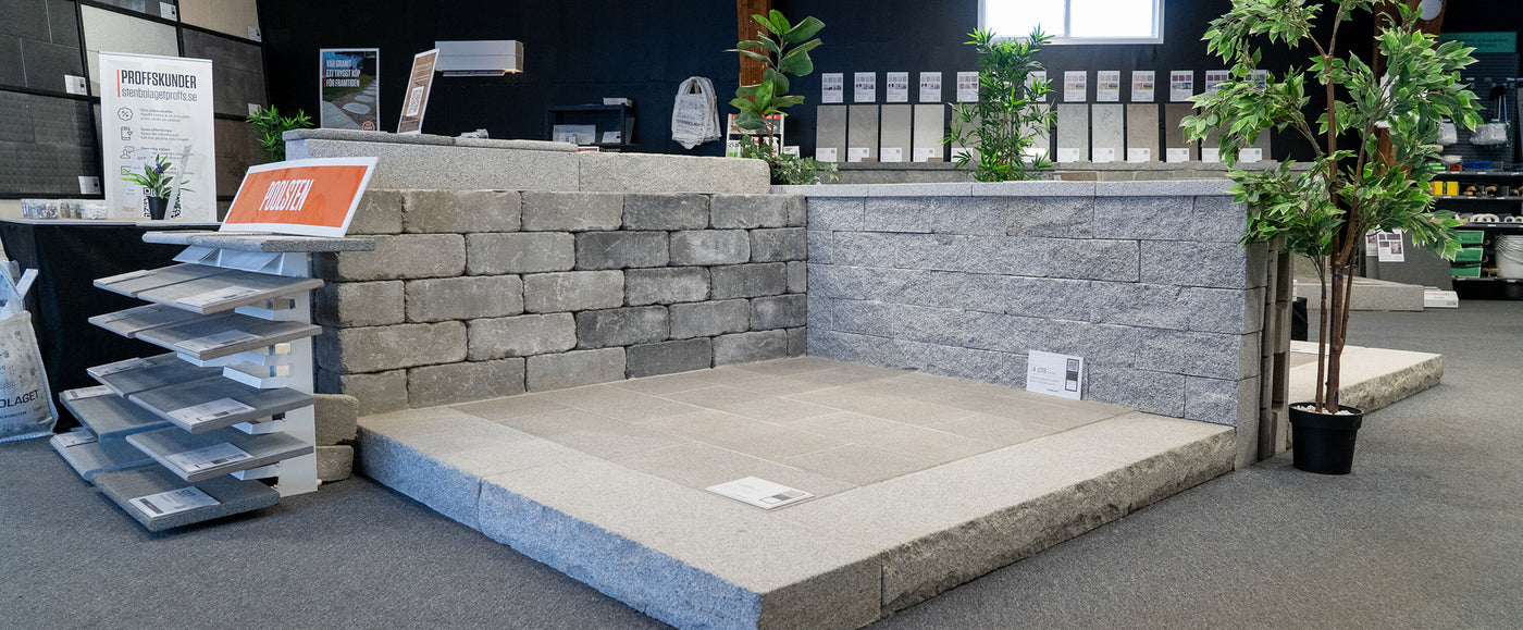 Här hittar ni ett brett sortiment av natursten och betongprodukter med inspirerande utställning och engagerad, kunnig personal. Vi hjälper dig gärna med kommande projekt inom allt som har med sten och markarbeten att göra.