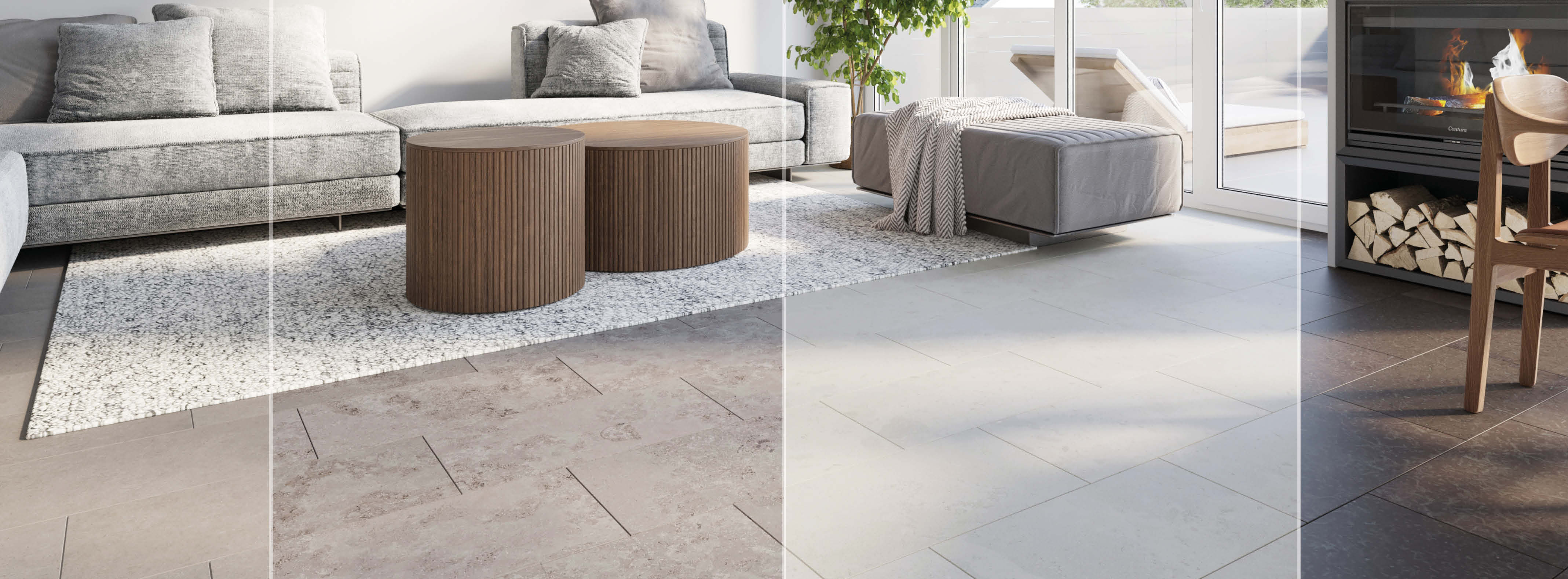 Granitkeramik i vardagsrummet skapar en naturlig atmosfär och plattornas mönsterbilder ger en mjuk och behaglig rumskänsla. Den djupa texturen i ytan tar fram det naturliga i ditt vardagsrum och du får ett ombonat hem för både vardagen och helgens umgänge.
