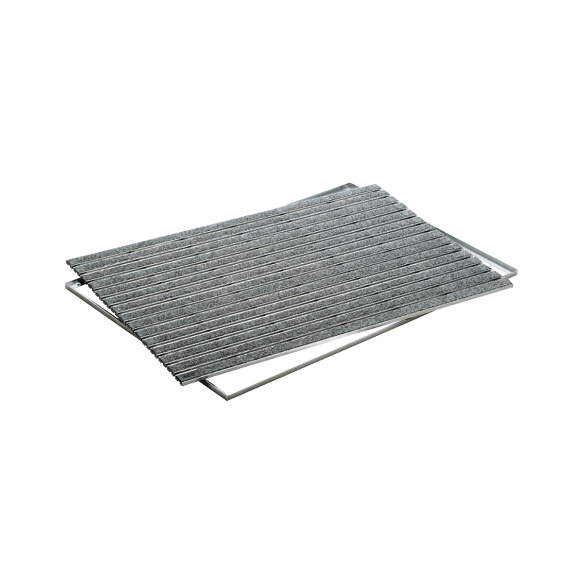 Galler av aluminium med nålfiltsmatta som är grå och produkten kommer i formatet: