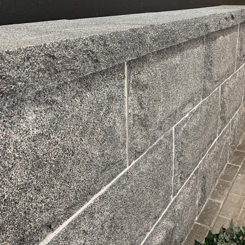 Avtäckning Combi Grafitgrå är en avtäckning som passar till både betongmurar och murar i natursten. Det är samma sorts granit som vår beklädnadsgranit Grafit vilket gör att denna sten är ett utmärkt val som toppsten till denna.