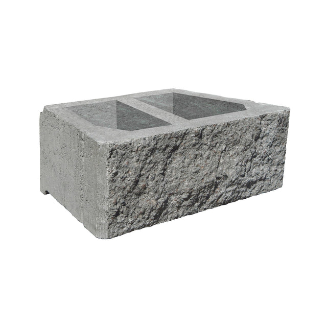 Den knäckta fronten skapar en levande ytstruktur medans dom ihåliga blocken gör murstenen lätt att arbeta med. Perfekt för dig som vill ansluta en granittrappa upp i din trädgårdsmur.