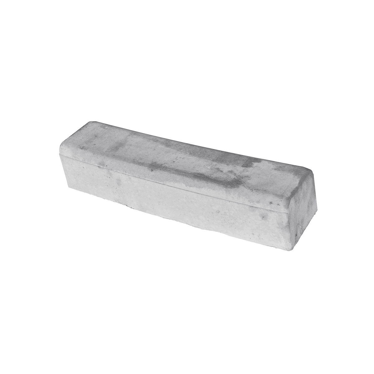 Ett böjt G-stöd, även kallad limkantsten, med en radie 4.5m i grå färg.