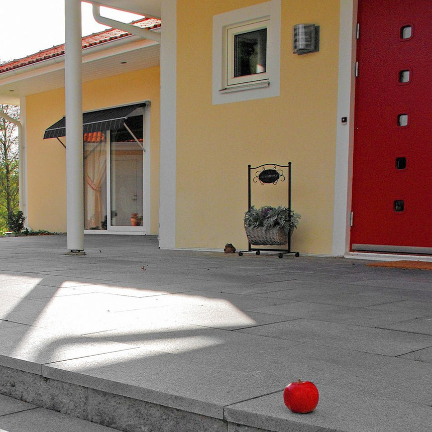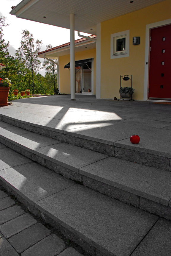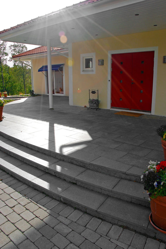 Granithällar i vacker grå Bohusgranit som kommer i fallande längder med en bredd på 300 mm och sågade kanter. Fallande längder innebär att längderna varierar villket också gör ytan mer levande då fogarna hamnar oregelbundet över den lagda ytan. Stenen finns i flera olika tjocklekar vilket ger dig valet till att hitta den häll som passar till just ditt projekt.