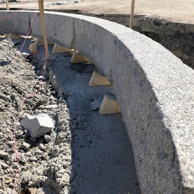Radien som vi utgår ifrån på vår hemsida räknas från den sidan på stenen man ser utifrån om stenen läggs konvext. Kantstenens tjocklek är därför inräknad i radien, ta därmed bort tjockleken på stenen från radien för att få rätt radie för en konkav kurva.