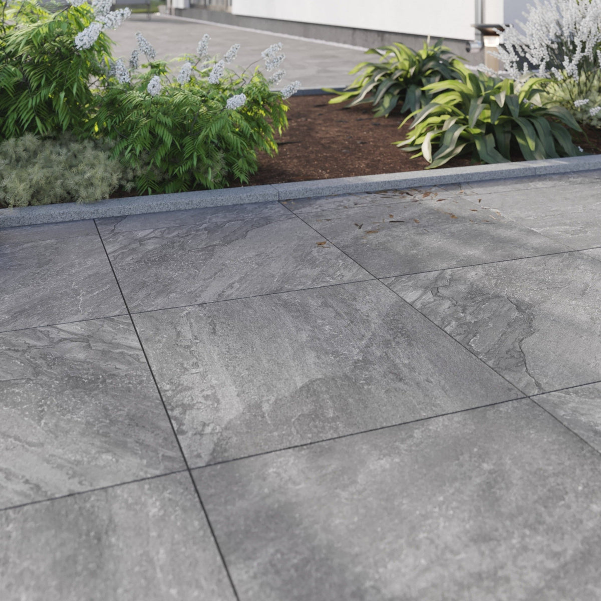 Ytformatet 597x597x20mm ger en stabil stenläggning där plattorna kan läggas i både raka led och i traditionellt halvförband. Stora plattor ger en vacker mönstring då texturen vandrar vackert igenom stenen, och på en större platta så blir mönstringen jämnare än på mindre stenar. Stora format är verkligen på modet just nu och passar till likväl ytläggning som härliga trampstenar i gräs och grusgång. Rama in din yta med kantsten för absolut stabilast resultat. Kantsten i granit är att föredra när du lägger granitkeramik då du bibehåller det naturliga samspelet mellan materialen.