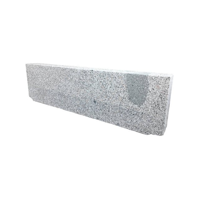 Grå granitkantsten i GV2 format. Stenen kommer med en bredd om 12cm och utgör en stabil kanstenssarg och avdelare mellan ytor. GV2 fungerar utmärkt till att stabilisera markläggningar av marksten och plattor kring både trafikerade ytor och i trädgårdsmiljöer.