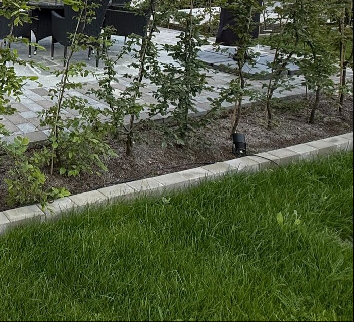 Den släta ytan och dess lätt fasade kant ger en modern look till projektet. Vår betongkantsten Modern har en yta som smälter in i trädgårdens alla rum, oavsett stil.