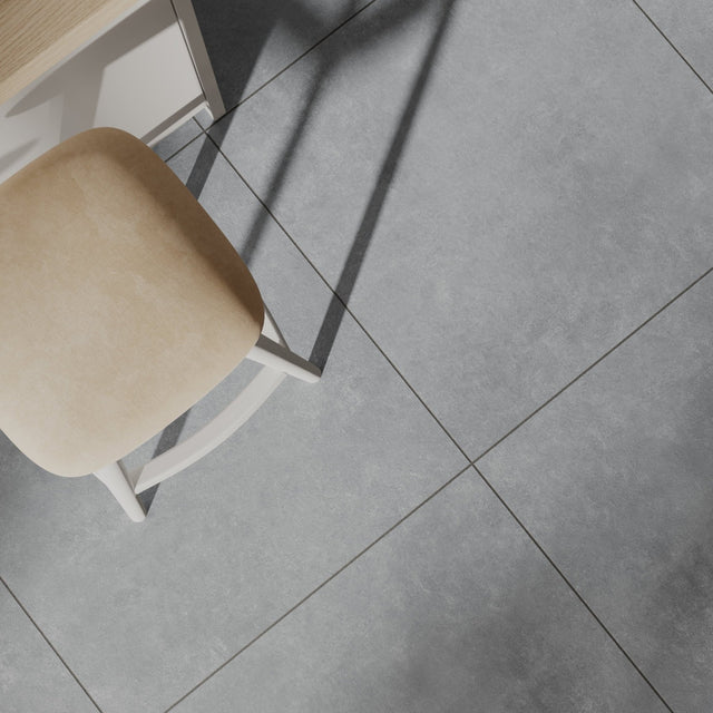 Modern granitkeramik medmönsterbilder inspirerade av betong och cement. Den grå nyansen sätter lugna toner till ytorna och du får både ett tilltalande golv rent estetiskt och hållbarhetsmässigt!