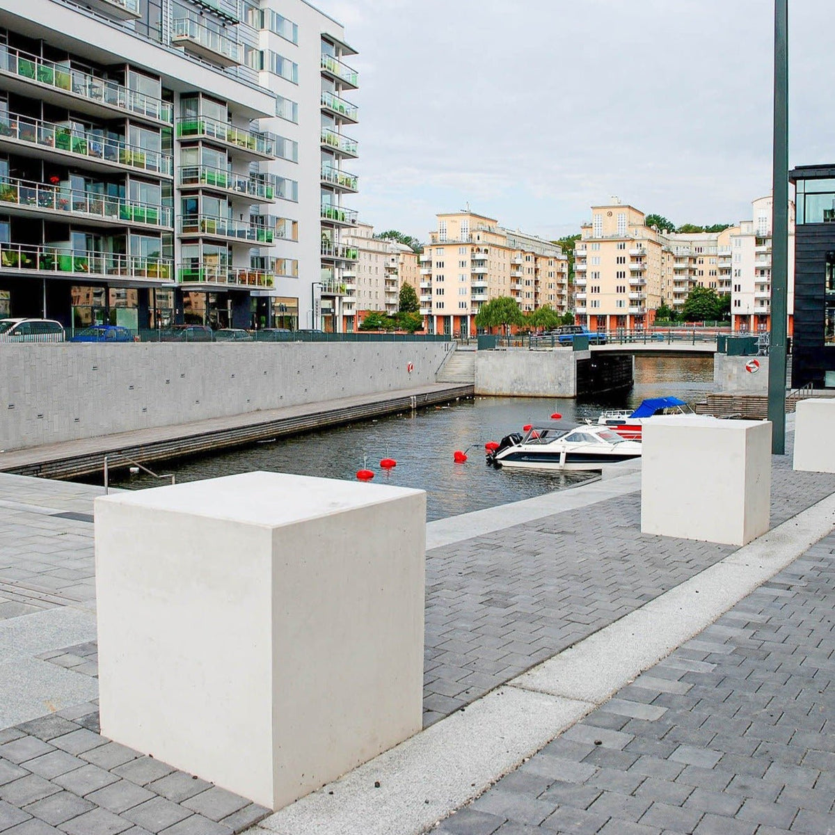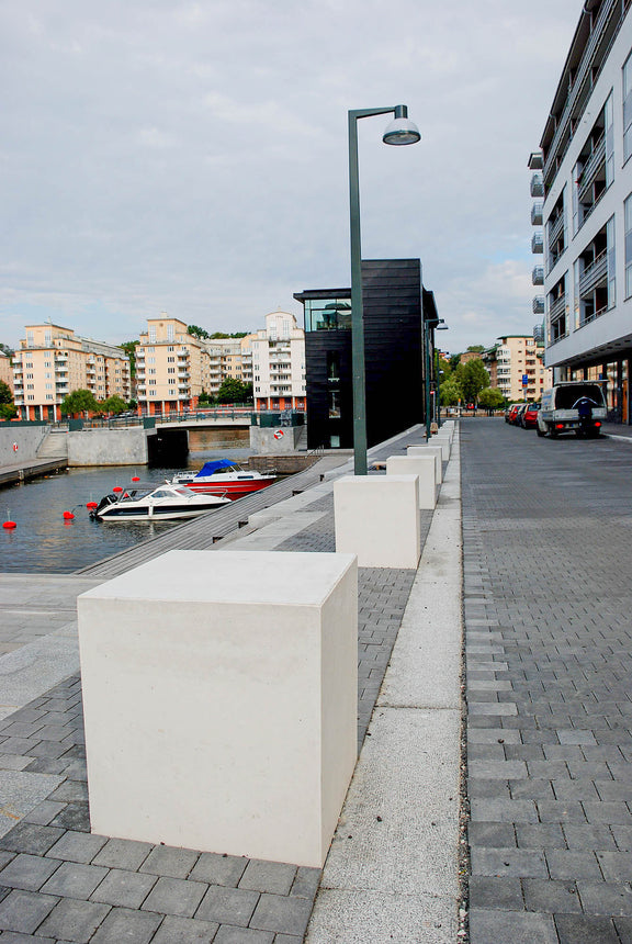 Kuben Parkmöbel har en stilren design och ger en trevlig sittyta. Kuben kan även monteras som avstängare och avgränsare mellan körbara ytor och gång-/cykelbanor. De raka linjerna och den släta formen ger ett modernt intryck till ytorna.