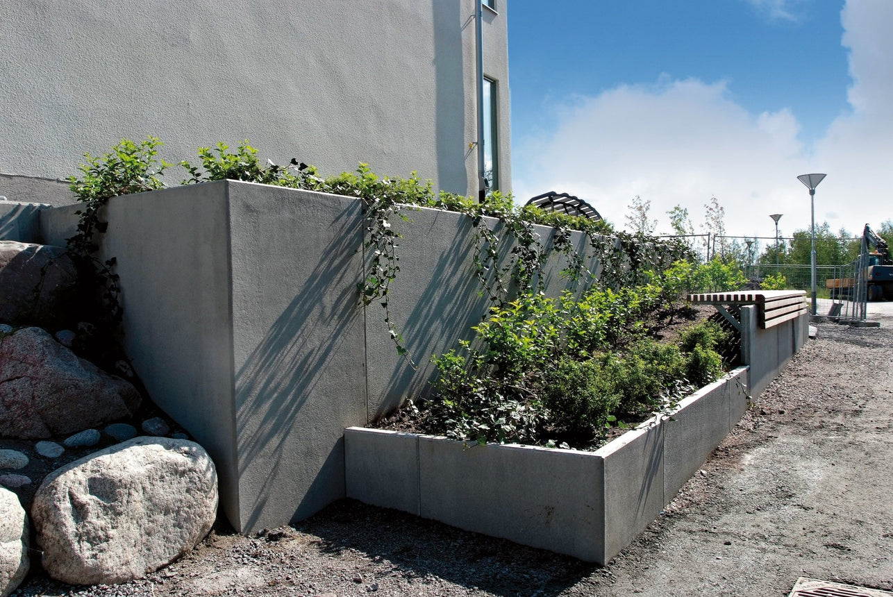 Denna mur har ett specialmått på 3m i bredd, gjutet i 1 stycke. Den är anpassad för lägre monteringar i miljöer som inte har allt för högt tryck. Använd för att stötta upp en sluttning, höja en personbilsparkering eller i parkmiljöer. Den rollade ytan välkomnar för beklädad av muren, så som granitbeklädad, skiffer eller annan natursten. Muren har ett not- not fäste och ska därför monteras tillsammans med fler L-stöd från not- not serien.