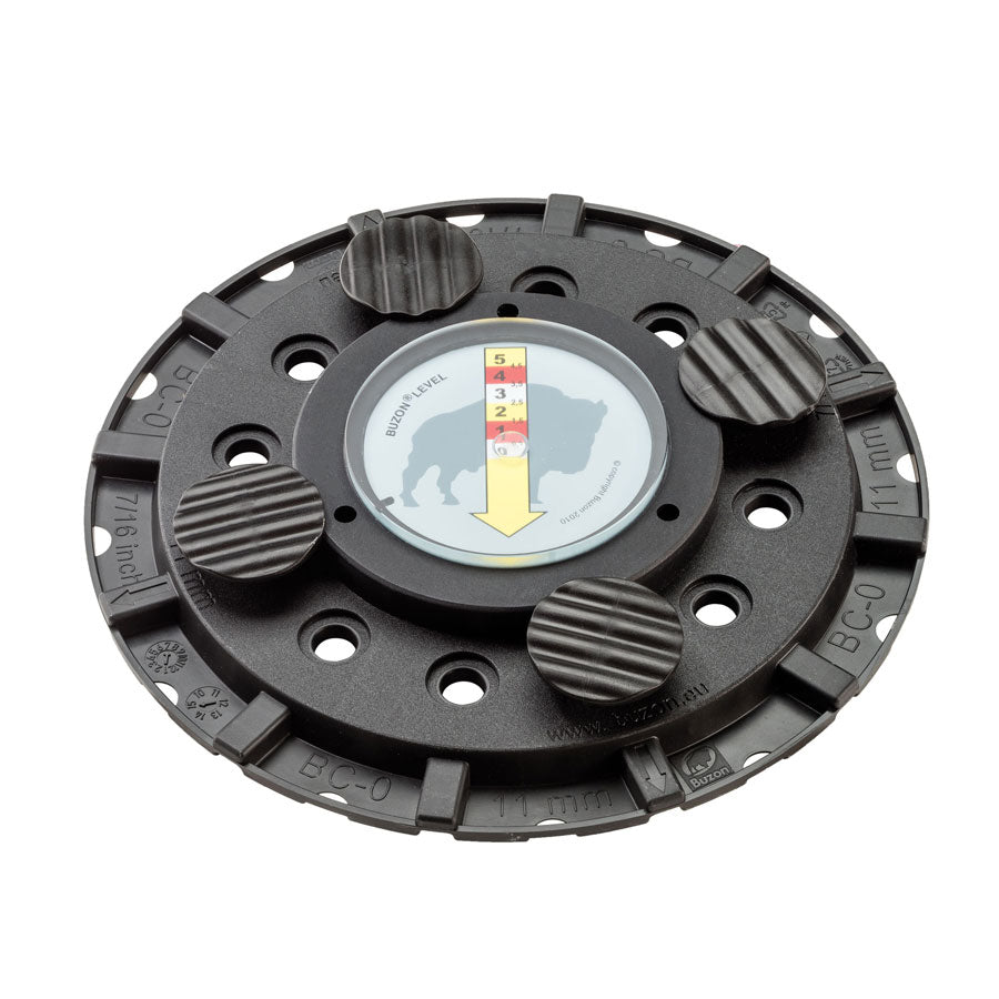 Lutningsmätare med inbyggt vattenpass, tillverkad i slitstark polypropen. Verktyget används för att mäta både riktning och grad av lutning på den yta där en piedestal från Buzon ska installeras. Denna information är avgörande för att kunna använda Buzons system för lutningskorrigering på ett korrekt och effektivt sätt.