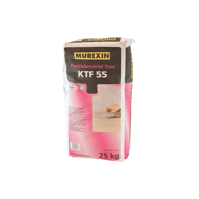 KTF55 är ett naturstensfix som är vatten- och frostresistent och kan monteras såväl inomhus som utomhus. Fixet går att arbeta med på både golv och vägg. Fixet kommer i rejäla 25kg:s säckar och räcker till ca 6 liter fixmassa. Detta fix är bra för läggning där extra flexibel fästmassa behövs. Fästmassans sätts i en tjocklek mellan 3-20mm. Vid montering av större plattor är vanligast med en större tandspackel.
