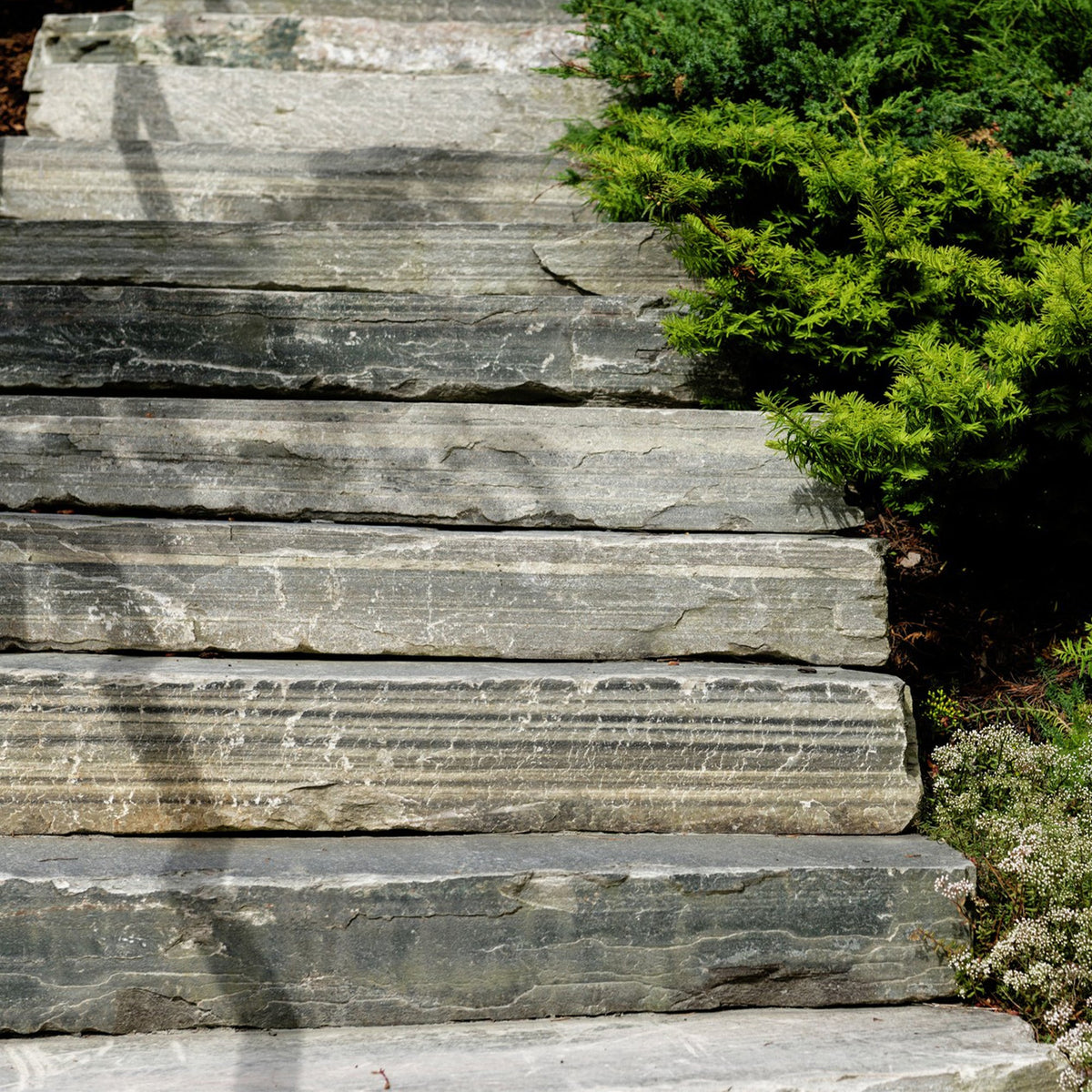 Vackert terrängsteg som ger din trädgårdsgång liv och rörelse. Med sina vackra nyanser och färgskillnader är det slittåliga Oppdalsskiffret ett utmärkt alternativ till ditt uterum.
