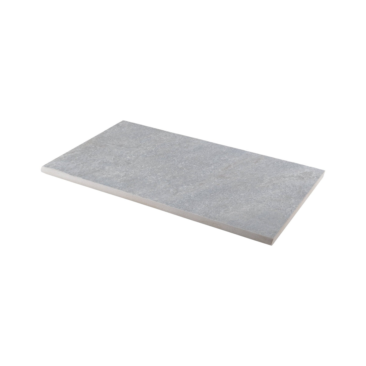 Serien Vindö kommer även i större plattor som snyggt kan kombineras in i trädgårdens gångbara ytor och till själva poolområdet. Detta ger ett sammanhängande poolområde och en poolkant som väl smälter in i stenläggningen. Vindö har en melerad yta som slår i grå toner.