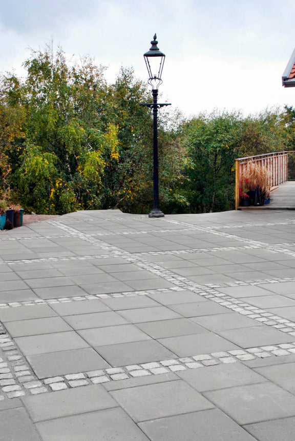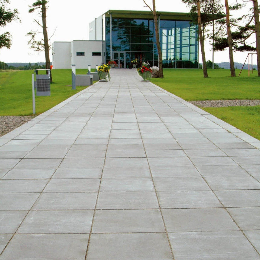 En klassisk platta i naturgrå färg som går utmärkt att använda i många olika situationer. Den fungerar både till trädgård och uppfart, men klarar bara trafik från vanliga personbilar. De släta plattorna är fasade och har ingjutna distanser på tre sidor för att underlätta under anläggning.