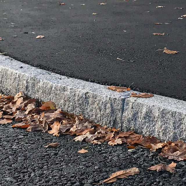 Granitkantsten kommer med en tjocklek på ca 12cm.