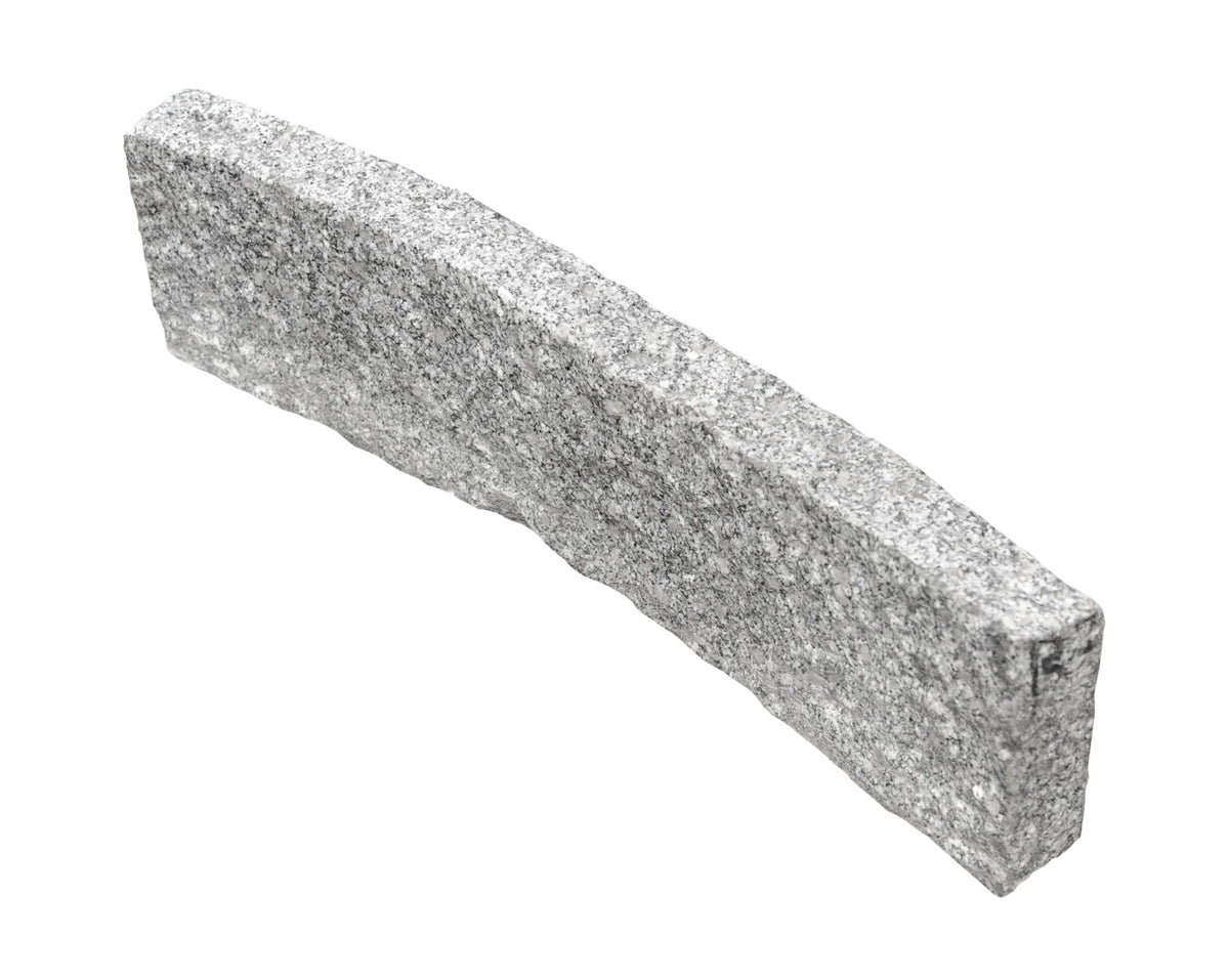 Granitkantsten i radieformat och svängt format. Stenen passar med övriga stenar i serien och kombineras enkelt till böljande former och stabila kanter där den monteras. Stenen har en radie på 4.0m