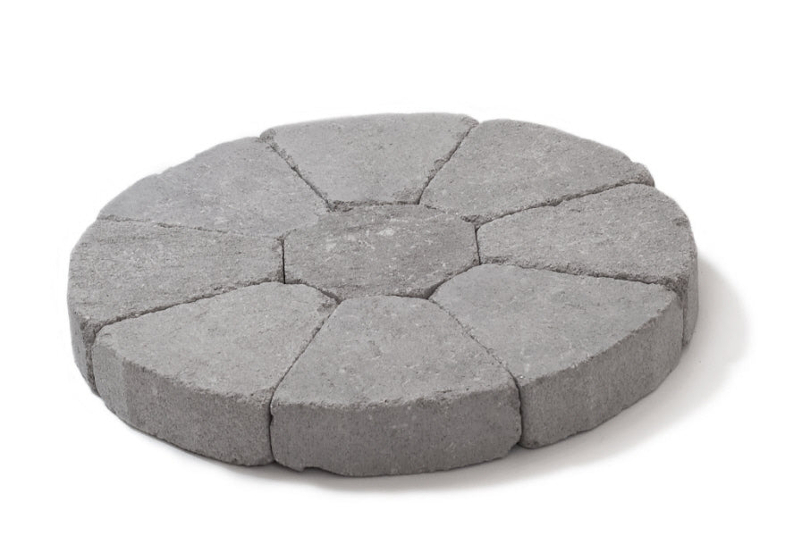 En naturgrå sten som läggs i mitten av din cirkelstensläggning. Runt denna läggs de matchande kilstenarna i Rustik serien i lager efter lager, tills rätt storlek uppnåtts. För att räkna ut vilka kilstenar som krävs och hur många, kan du använda vår uträkningstabell, eller kontakta oss för hjälp! De här stenarna är tumlade för att ge dem ett charmigt begagnat utseende och finns även i mörkgrå färg.