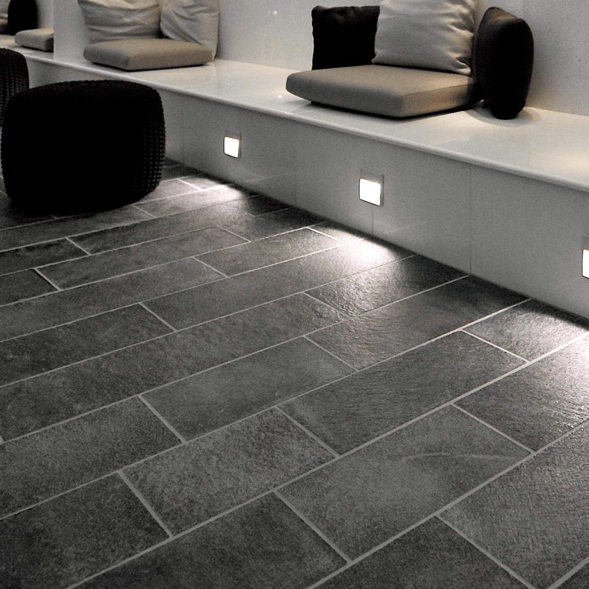 Skiffer från Offerdal håller en mörkt grå nyans som drar åt det blyertsgrå hållet. Skiffer kommer med en hel del skiftande toner och nyanser vilket bidrar till det naturliga i golvläggningen. Det är detta som gör ett skiffergolv unik och spännande. Den naturliga klovytan bidrar till en stor karaktär i hemmet, en varm känsla och en vacker ytstruktur utan att upplevas vass för foten. Plattorna kommer i fallande längder och en bredd om 200mm vilket innebär att fogarna hamnar utspritt över skifferläggningen. En del bearbetning och kapning är på sin plats för att få till ett flytande golv samt att att anpassa stenlängderna för att få till en naturlig stenläggning.