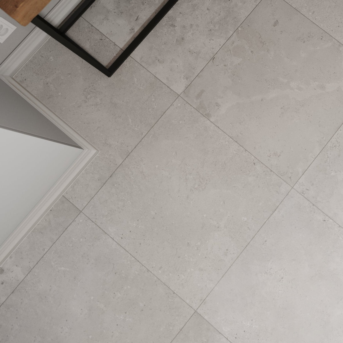 Granitkeramik i Ljusgrå nyans och med mönsterbilder som hämtat sin inspiration från kalksten.