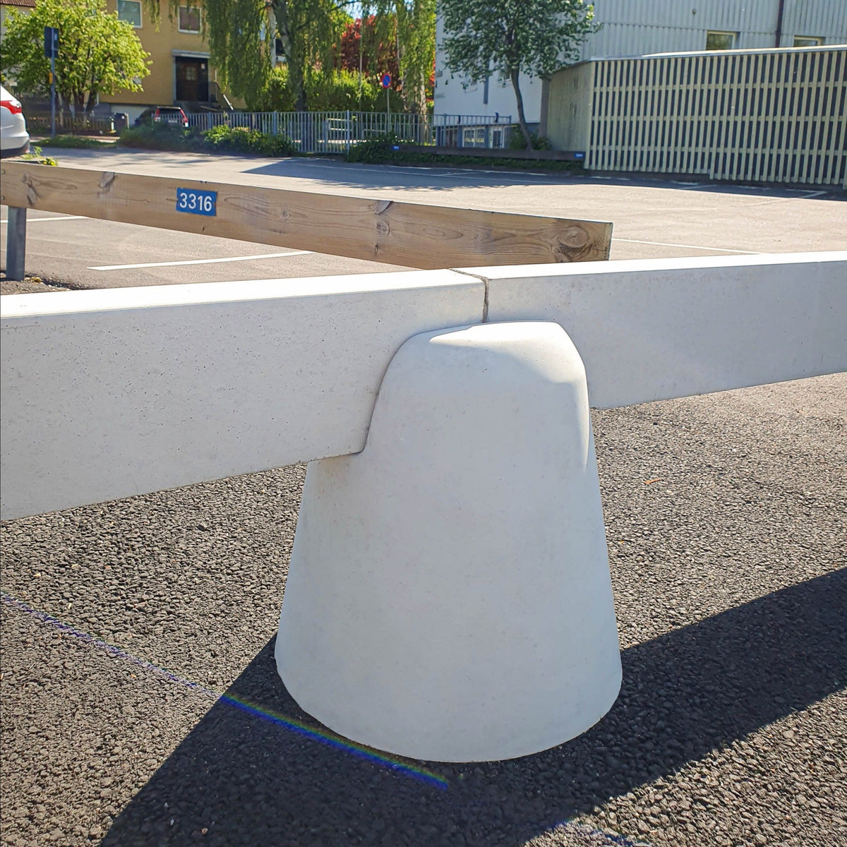 Här har vi en produkt du säkerligen sett många gånger i ditt liv! Vi skådar ofta dessa naturgrå betongsocklar på offentliga parkeringar där de monteras tillsammans med Balken. Sätts smidigt på plats genom att placera Balken-slitsen på fundamentet.